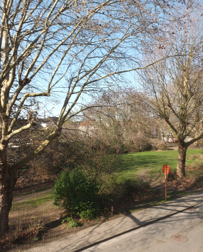 - Uitzicht op het Banierpark aan de overzijde van de straat