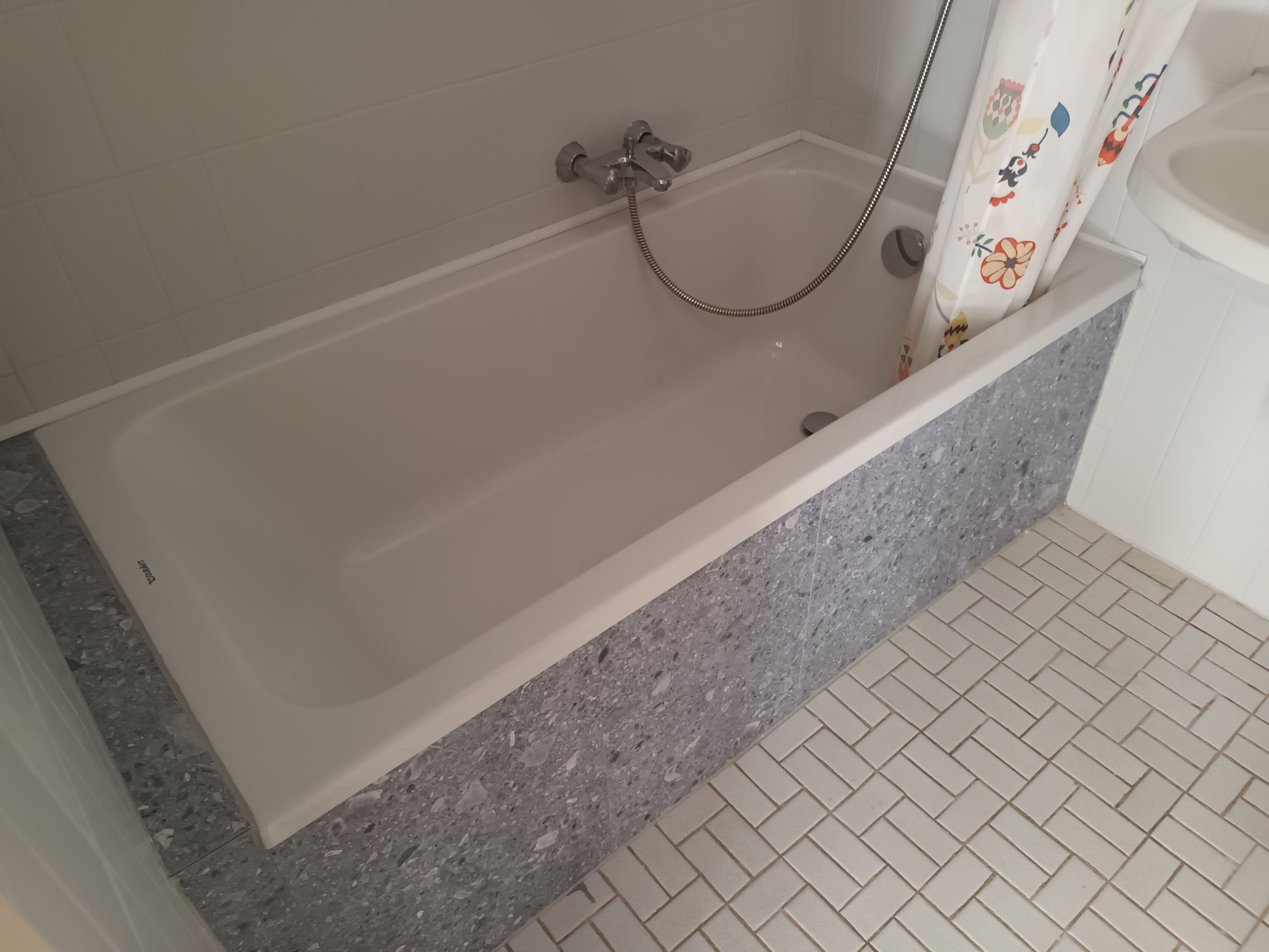 - Badkamer met ligbad, lavabo en toilet